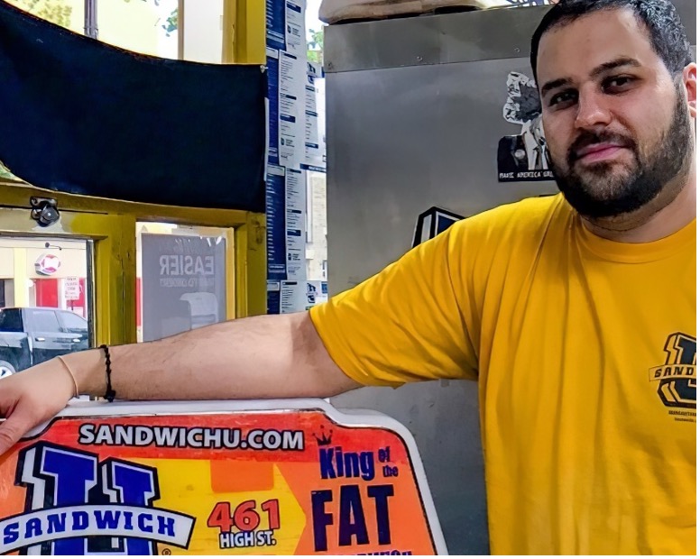 George Tanios at his sandwich shop in Morgantown